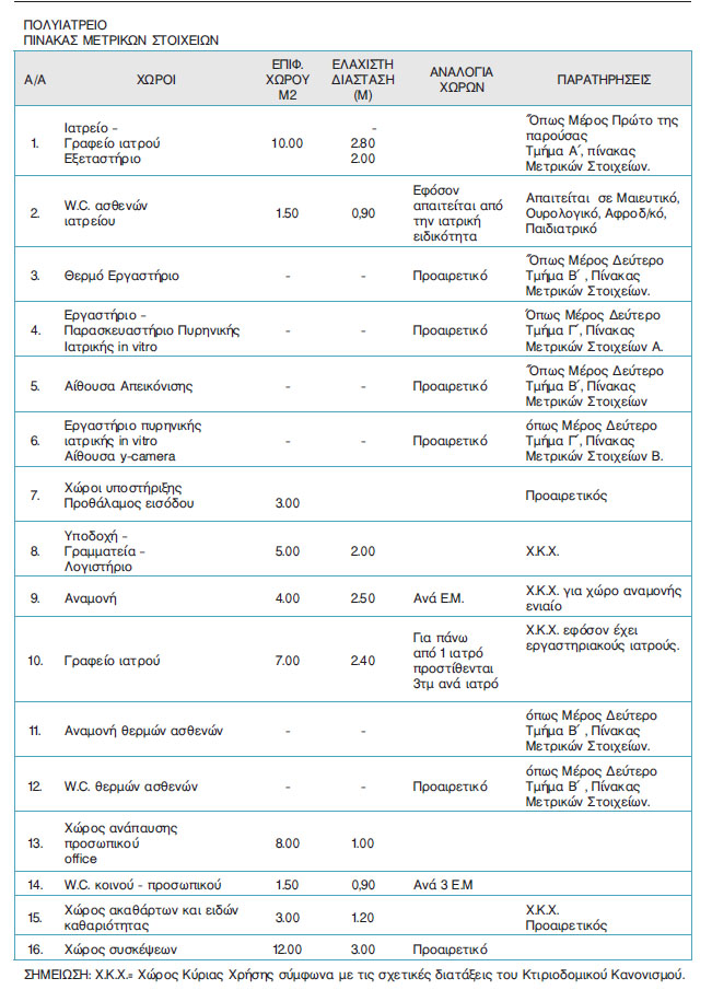 • Το Πολυϊατρείο υπάγεται στον Κτιριοδομικό Κανονισμό και στον Κανονισμό Πυροπροστασίας Κτιρίων στην κατηγορία χρήσης ¨Υγεία και Κοινωνική Πρόνοια¨, όπως ισχύουν.